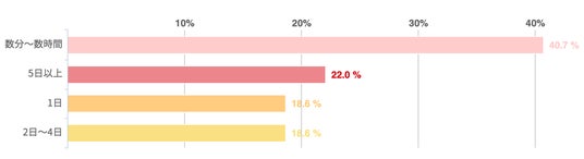 最も多かったのは「数分~数時間(40.7%)」であり、30分~1時間程度で借入できたという事例が多く寄せられている。