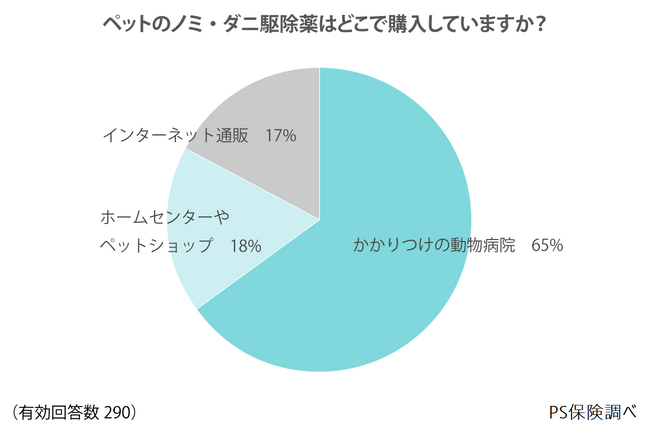 また、駆除薬を購入している場所としても「かかりつけの動物病院」という回答が最も多く、65%を占めました。
