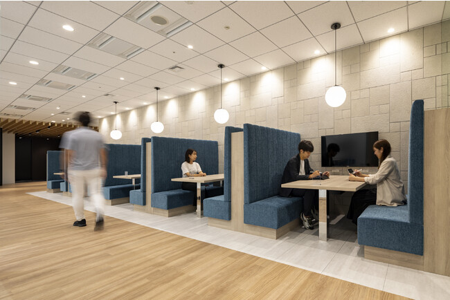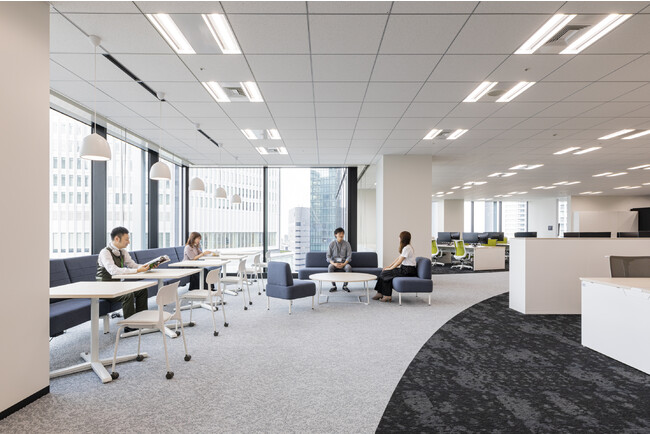 窓際にはソロワークから打ち合わせまで様々な使い方ができるソファスペースや個室型ワークブース、カウンター席などを設置。