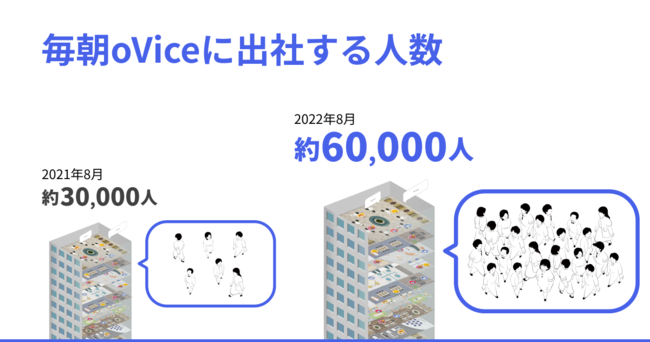 毎朝oViceに出社する人の数は、前年比2倍となる6万人以上となりました。