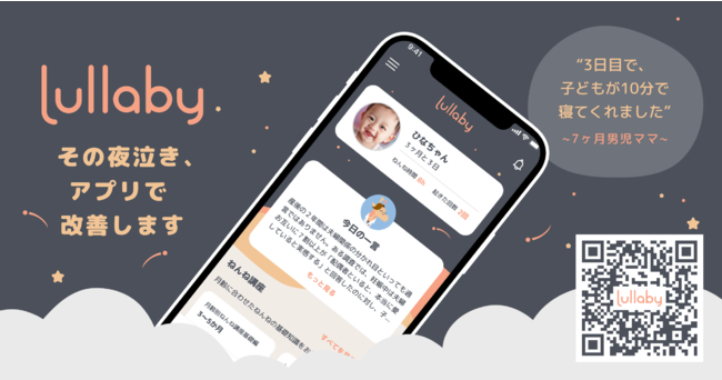 Lullabyは乳幼児の夜泣き・寝かしつけに悩むママ・パパを包括的にサポートする 3 つのサービスが備わったアプリサービスです。3 児の母で東大医学部卒・医師の森田麻里子氏を監修医として迎え、科学的根拠に基づいたデータの使用に拘り、更に日本の住環境・生活に合った情報提供を最重要視することで、忙しいママ・パパでもすぐに活用できるアプリとなっています。アプリのインストールはQRコードから!