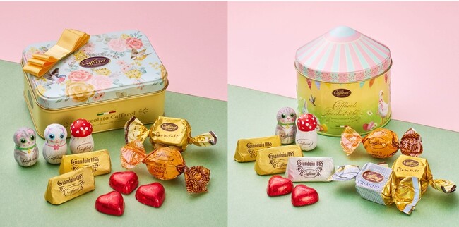 内容:「プリマベーラ アソートM缶」(全10粒)、「プリマベーラ サーカス缶」(全10粒)の2缶セット。いずれもパステルカラーを基調とした美しいデザイン缶で、チョコレートを食べ終わった後でも小物入れとしてお使いいただけます。※チョコレート合計20粒、4,752円(税込)相当の商品がセットされています。