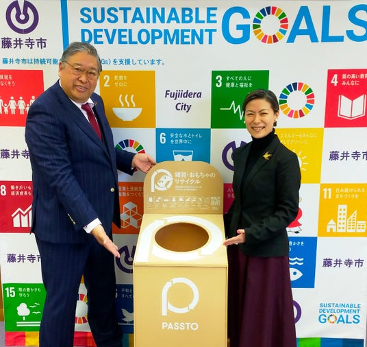本協定により、令和7年4月1日~令和8年3月31日の期間、ECOMMITが運営する資源循環サービス「PASSTO(パスト)」の不要品回収ボックスを、藤井寺市の市役所をはじめとした公共施設の4拠点に順次設置し、ご家庭で不要になった雑貨やおもちゃを廃棄するのではなく、リユースへと繋げる仕組みを提供することで、地域全体で資源循環に取り組みます。