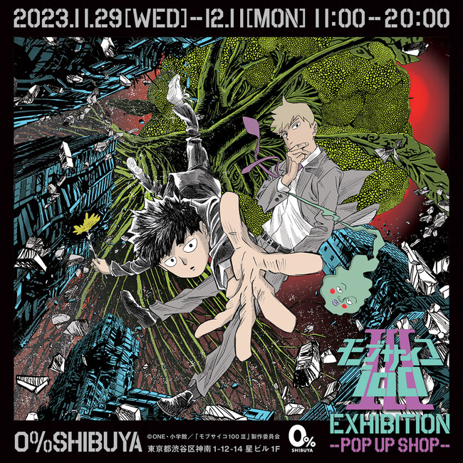 株式会社 Juice(代表取締役:神戸テルオ・本社:東京都豊島区)は、ONE原作によるTVアニメ「モブサイコ100 III」をモチーフにしたPOP UP STORE「モブサイコ100 III EXHIBITION -POP UP SHOP-」を、2023年11月29日(水)より「0% SHIBUYA(東京都渋谷区神南1-12-14 星ビル1F)」にて開催致します。
