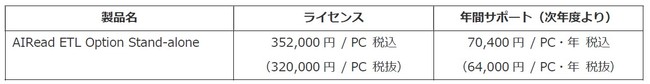 「AIRead ETL Option Stand-alone」について