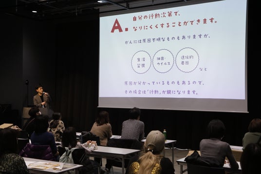 謎解き体験後は、講師の清水裕介先生(藤田医科大学産婦人科講師)による、乳がん・子宮頸がんに関する講義を開催。