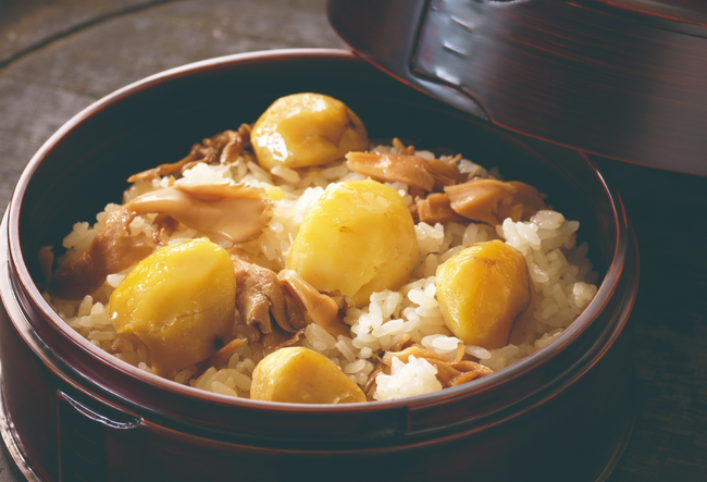 ほっくりと甘い熊本県産の和栗を使用。味つけには、椎茸や鰹節、焼きあごのだしの素材と淡口醤油を合わせ、奥深い味わいに仕上げています。