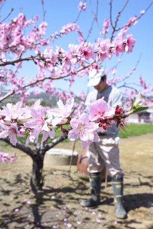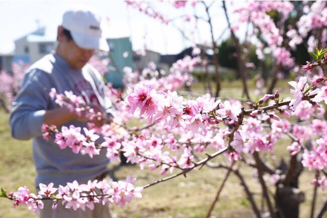大田さんは「近くを通りがかった際などに鮮やかな桃の花を見てもらって、明るい気分になってもらえたら。桃の生育は天候に左右され、なかなか思い通りにはいきませんが、おいしい桃を皆さんにお届けしたい」などと話していた。