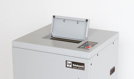 「NMD-400CB」はタブレット端末やPC等の電子基板をはじめ、SSD(M.2)、USBメモリ等の媒体を物理破壊できる電子基板破壊機です。従来品よりもさらに細かなピッチで押しつぶし、確実に破壊します。