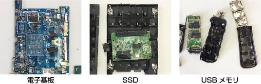 ・タブレット端末やPC等の電子基板をはじめ、SSD(M.2)、USBメモリ等の媒体を物理破壊できる電子基板破壊機