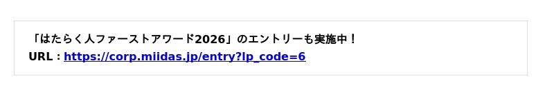 URL:https://corp.miidas.jp/landing/hatarakuhito_first_award/2025/ranking