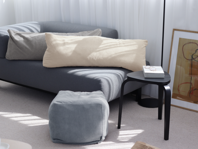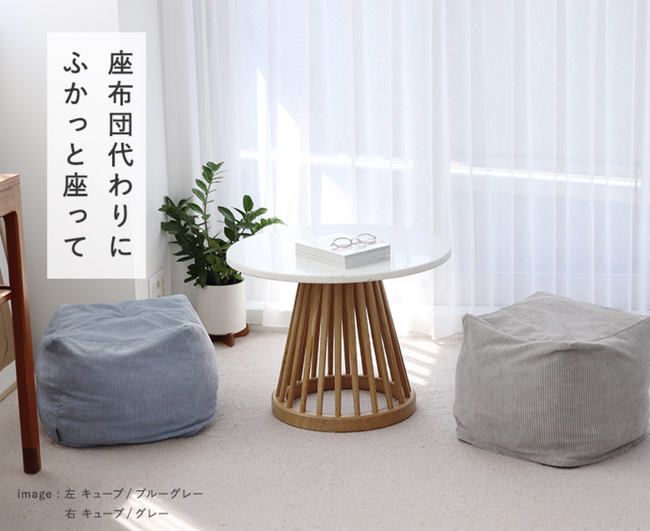 クッションとしてはもちろん、背もたれやオットマンとしてなど、マルチ使えるかたちです。
