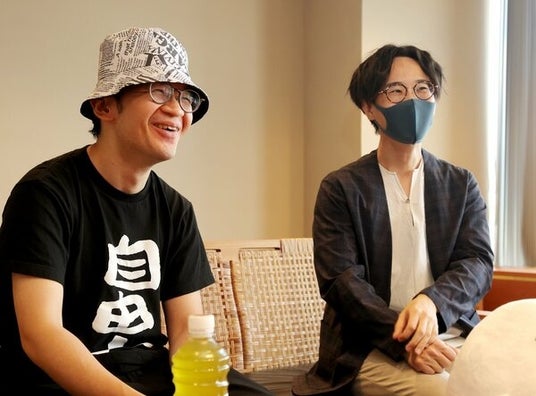 「月音夜」への抱負を語る菊池亮太さん(左)とござさん
