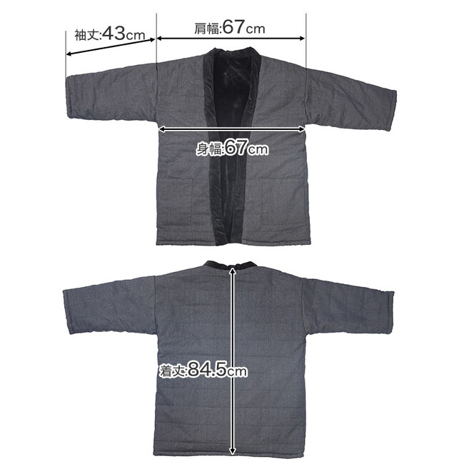 <仕様>・サイズ/フリーサイズ/着丈:84.5cm 肩幅:67cm 身幅:67cm 袖丈:43cm ・重量/約1.2kg