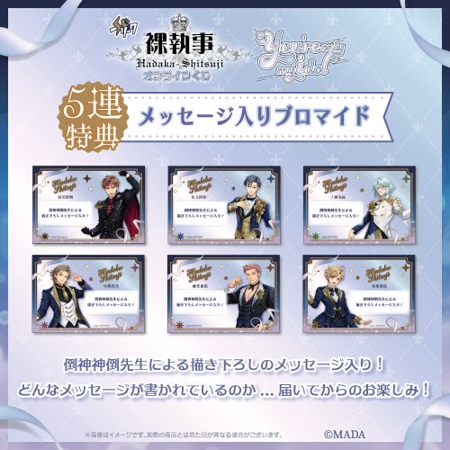 5連特典にはキャラクターたちのメッセージ入りの特別なブロマイドも登場!