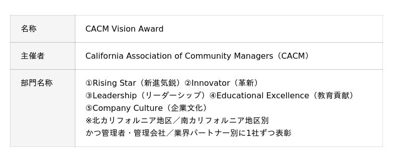 出典:CACM Vision Award 2026 ノミネーションフォーム(2025年8月)(California Association of Community Managers)
