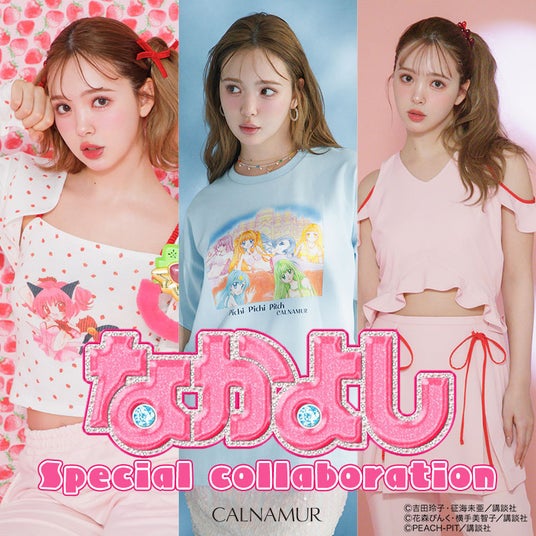 今回のコラボレーションは「CALNAMUR」クリエイティブディレクター 藤田ニコルが愛読していた『東京ミュウミュウ』『しゅごキャラ!』『ぴちぴちピッチ』の3作品より印象的な原画を使ったTシャツや作品のキャラクターをイメージしたセットアップ、コーディネートに取り入れやすいアンサンブルトップスやスウェットパンツなどそれぞれの作品らしさが溢れた全9型が完成しました。