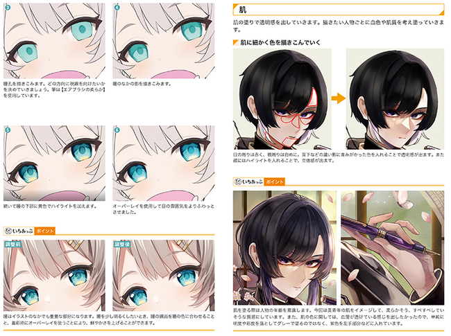 本書では、「映える」塗り方を「肌」「髪」「顔」「目」「服」など、項目別に細かく解説。Vtuberやゲームイラストなどを手掛けてきたイラストレーターによる分冊版の内容に加え、本書限定の要素として、新進気鋭の人気イラストレーターである石田氏とVtuberとしても活躍するののまろ氏による、新規に収録された塗り方も収録しています。