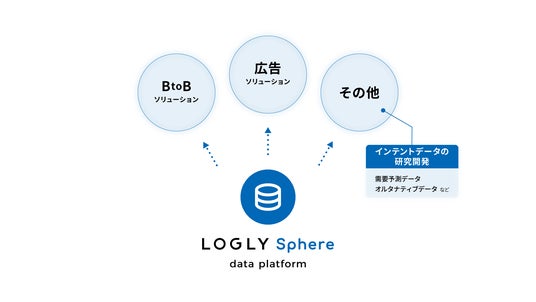 また、従来より蓄積してきた商品購入データやデータプロバイダーから収集した企業データおよび職種データなどをインテントデータとかけ合わせることで、広告配信プラットフォームへの展開やCDP、CRMなどのクライアントの保持するデータをエンリッチ化するなど、「LOGLY Sphere」をデータ基盤としたサービスの提供を行ってまいります。