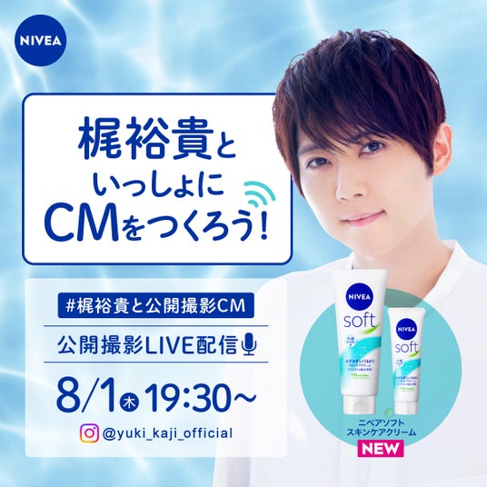 ニベア花王株式会社 (東京都中央区) は、『ニベアソフト スキンケアクリーム』のプロモーションとして、声優の梶裕貴さんを起用した新WEB-CM撮影を、2024年8月1日(木)19:30より、梶裕貴さんのインスタグラムアカウントからLIVE配信いたします。