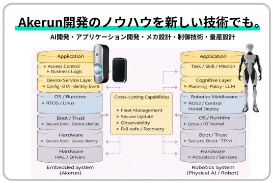 また、HESaaS(Hardware Enabled Software as a Service)モデルで提供されるAkerunの開発を通じて、ハードウェア、組込み、AIを含むソフトウェア、製造までを網羅するフルスタックの開発体制に強みを有しており、さらに法人向け事業で培ったハードウェア/ソフトウェア両面での信頼性や安定性で豊富な実績を有しています。