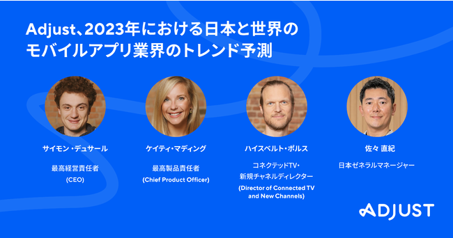 モバイルマーケティング分析プラットフォームであるadjust(アジャスト https://www.adjust.com/ja/ )株式会社(本社:独・ベルリン、CEO(最高経営責任者):サイモン・デュサール、日本ゼネラルマネージャー:佐々直紀)は、Adjustを代表する4名が8つのインサイトをご紹介する「2023年における日本と世界のモバイルアプリ業界のトレンド予測」を発表します。