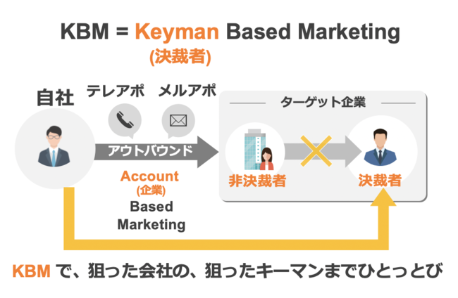 マーケティング活動におけるターゲティングを「会いたい企業(Account)」を超えた「会いたいキーマン・決裁者(Keyman)」まで絞って接点を作ることで、より効率的なマーケティング活動を行うことができる『KBM(Keyman Based Marketing)モデル』の開発と提供を進めています。