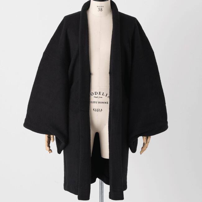 100%ヴァージンウールのフリースを使用した羽織です。柔らかな肌触りのパイル生地を両面共に起毛させた、豊かなボリュームが特徴。驚くほど軽い着心地と暖かさで、きものの上に羽織るのはもちろんですが洋服の上から羽織るアウターとしても着ていただけるアイテムとなっています。