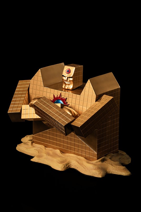 キン肉マンの醍醐味のひとつでもある、体格差のある超人がリング狭しと駆け巡り戦う姿。SpiceSeedはその臨場感を再現するために、超ヘビー級の超人『サンシャイン』を、全高約39cmの迫力のサイズで立体化。自らの体を砂にかえ変身した姿、砂地獄バージョンもお楽しみいただけるコンパチ仕様!!
