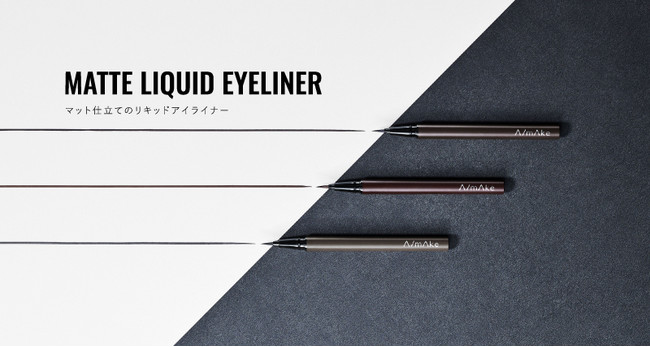 「マットリキッドアイライナー」は、1.発色が物足りず何回もアイラインを引くのが大変、2.アイラインが馴染みにくく、他のメイクから浮いてしまうことがあるのが気になるという意見をもとに、メイク馴染みの良いマット処方でテカリ感を抑え、一回で濃厚発色、リキッドなのにペンシルアイライナーのようなまぶたへの馴染みにこだわりました。