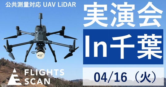 株式会社FLIGHTS(本社:東京都渋谷区、代表取締役:峠下周平、以下:FLIGHTS)は、2024年4月16日(火)、千葉県にて東洋エンジニア株式会社(本社:滋賀県大津市、代表取締役:荒川昇)とドローンレーザー実演会を共催します。 お申込:https://flights-scan.com/event/demo-chiba/