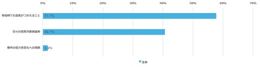 ・てるまるでんちに期待することについて、停電時にも電気を使えることとの回答が57.7%と、約6割の方が災害時などの安心につながる停電対策に期待していることが分かりました。
