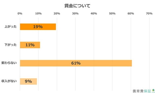 一方で、「自営業」を除く、雇用形態として不安定な「契約社員」「派遣社員」「パート・アルバイト」「無職」の方の割合は、全体の36%となりました。また、物価高騰が続く中で、賃金の上昇は、20%弱程度となり、
