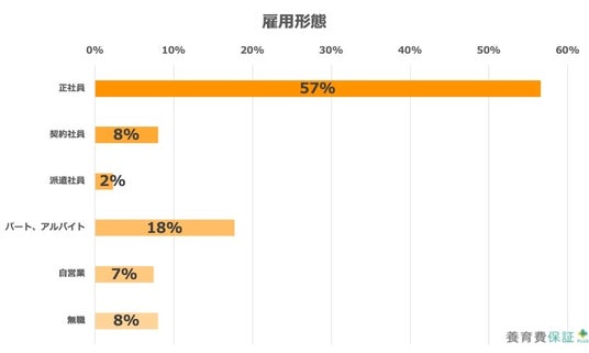 今回のアンケート調査は、日本シングルマザー支援協会の会員の方にお願いをしました。日本シングルマザー支援協会は、会員の正規雇用の支援も行っていることから、雇用形態として「正社員」の方が56%という結果でした。