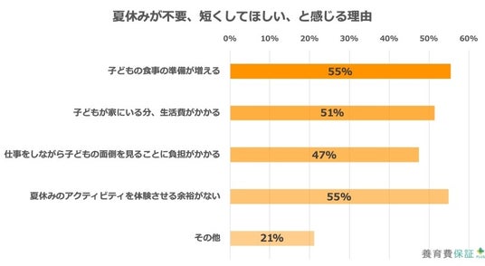「現状の期間より短くしてほしい」と答えた方が56%という結果になりました。その理由として、子どもの面倒を見るための労力や、生活費、