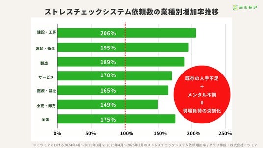 ※ミツモアのストレスチェックシステム依頼データは、2024年4月~2025年3月と2025年4月~2026年3月の比較に基づきます。
