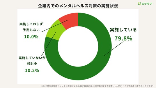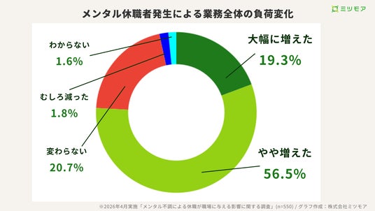 ビジネス製品・サービスのオンライン比較サービス「ミツモア」を運営する株式会社ミツモア(本社:東京都中央区、代表取締役CEO:石川彩子)は、メンタル不調による休職が職場に与える影響について調査を実施しました。