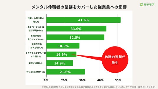 ・カバー社員の16.9%が自身もメンタル不調で休職する"連鎖"が発生