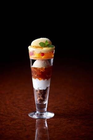 さらに、上の層は、ライチリキュールゼリーやパイナップルコンポートなどを使用し、口当たりさっぱりとした味わいに仕上げました。下の層のアールグレイを使用した紅茶アイスや紅茶ジュレは、風味と苦みの絶妙なバランスが締めにふさわしい味わいです。