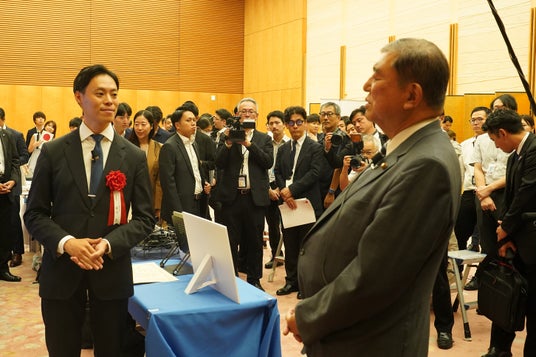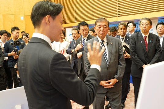首相官邸にて執り行われた表彰式にて 石破総理による当社ブース視察の様子 (2025年8月26日)