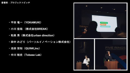 事前に登壇者を公開していなかったプロジェクトピッチでは、飛び入りの参加者を含め6名に登壇いただきました。