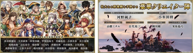 ○原作・メインキャラクターデザイン :河野純子氏「幻想水滸伝」、「幻想水滸伝IV」、「タイムホロウ奪われた過去を求めて」