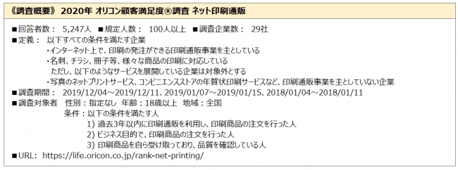 “見えない満足を可視化する”をコンセプトに、第三者の立場で独自に企画し調査を実施する「オリコン顧客満足度(R)」(https://life.oricon.co.jp/)を展開する株式会社oricon ME(本社:東京都港区、代表取締役社長:小池恒)は、『ネット印刷通販』についての調査を実施し、本日その結果を当社サイト内にて発表いたしました。※調査は2019年12月4日~11日に実施しています。