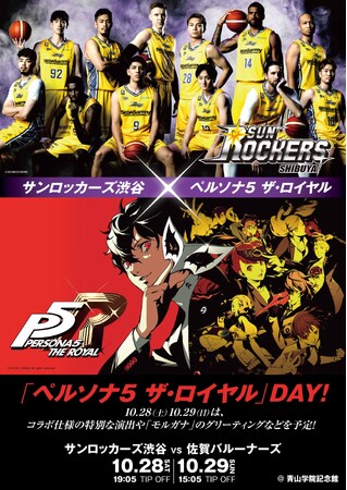 プロバスケットボールリーグB.LEAGUE所属サンロッカーズ渋谷は、2023年10月28日(土)・29日(日) を「サンロッカーズ渋谷VS佐賀バルーナーズ戦 ペルソナ5 ザ・ロイヤルDAY」として、開催することをお知らせいたします。
