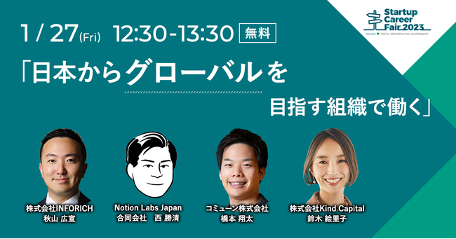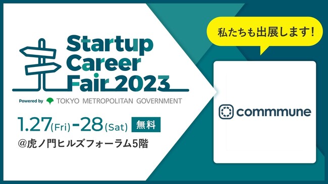 企業とユーザーが融け合うコミュニティサクセスプラットフォーム「commmune(コミューン)」と、効率的なカスタマーサクセスのためのアクション基盤「SuccessHub(サクセスハブ)」を提供するコミューン株式会社(本社:東京都品川区、代表取締役CEO:高田優哉)は、1月27日(金)・28日(土)に開催されるスタートアップの人材確保を支援するイベント「Startup Career Fair 2023」に出展することをお知らせいたします。また、1月27日(金)には取締役CPO橋本が「日本からグローバルを目指す組織で働く」というテーマのセッションに登壇します。