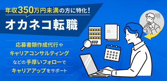 『オカネコ転職』年収350万円未満の方に特化!応募書類作成代行やキャリアコンサルティングなどの手厚いフォローでキャリアアップをサポート