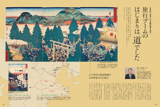 江戸時代中期には日本ではじめて旅行ブームが到来!お伊勢参りや富士詣などの寺社参詣、湯治を目的に庶民が全国行脚していました。そのきっかけとなったのは、徳川家康による「五街道」の整備。同時に宿場町が発展し、庶民でも気軽に旅行できるように。そしていまに続く街道の名物や文化も誕生しました。また『東海道五十三次』や『東海道中膝栗毛』をはじめとする“道”を題材とした作品も数多く出版され、江戸の世を席巻。それらの魅力をひも解き、往時の人々が旅に誘われた背景をご紹介します!