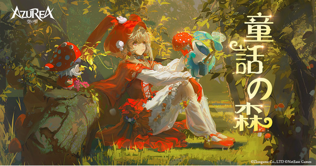 7月7日(木)のメンテナンス後より、赤ずきんや薔薇の騎士など、童話をモチーフとした「童話の森」スキンが登場します。「服装・赤ずきん」、「頭飾り・童話の夢」、「髪型・危険な狼」のほか、乗り物「童話の絵本」が登場します。