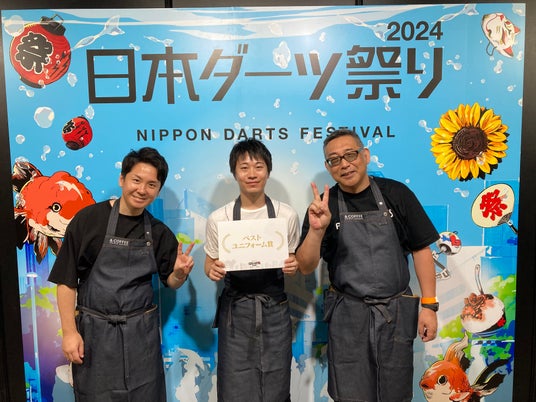 ダーツでは珍しいトリオスという3人1チーム制を取り入れた本大会。チーム戦という形式を活かし、企業色豊かなユニフォームで他チームとの差を見せつけたチームへ送られる「ベストユニフォーム賞」、試合中でも仲良く応援し合い、チーム全体の士気を高めたチームへ送られる「ベストチームワーク賞」といった特別賞もご用意しました。