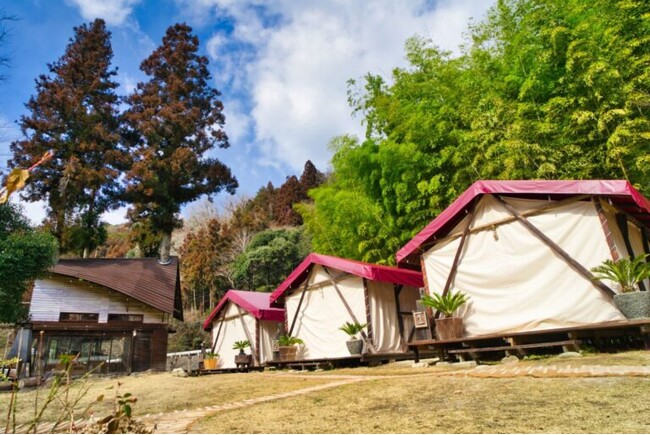 岡崎ICから20分。シンボルのツリーハウスが目印。四季折々の表情を楽しめるグランピング施設です。
